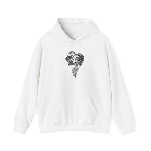 Artistic Face Collage Hoodie — Vintage Script Portrait Sweatshirt